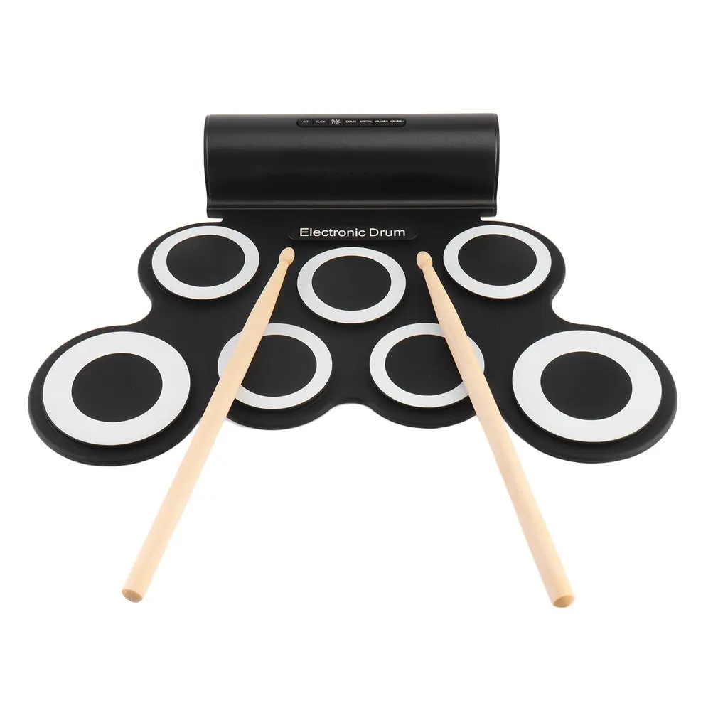 HIGH QUALITY Electronic Roll Drum Pad Built-In Speakers Digital Drum 9 Silicon Pad With Foot Pedals USB Charging