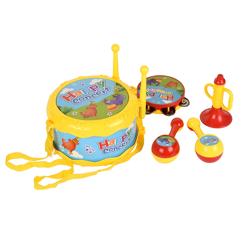 BEST QUALITY 5pcs/set Colorful Educational Toys Drum /Handbell / Trumpet / Sand Hammer / Drum Sticks Musical Ins